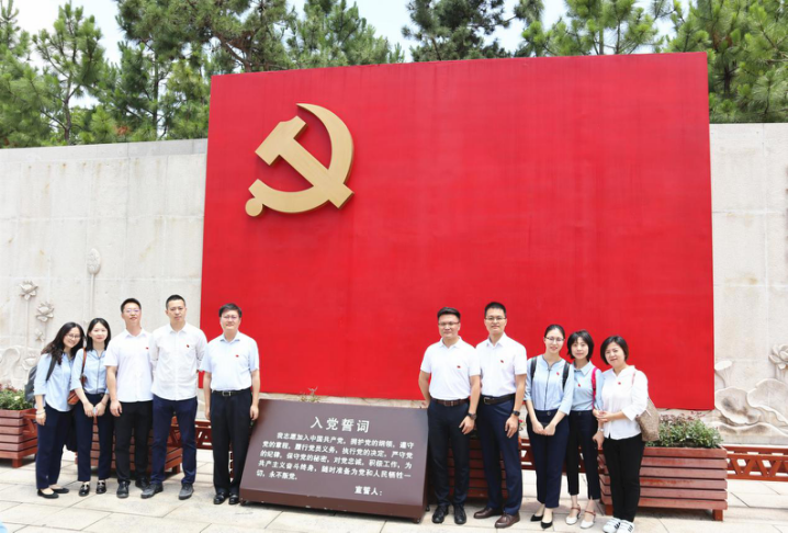 參觀完革命紀念館,公司黨員集體肅立在誓言墻前,面對鮮紅的黨旗,莊嚴舉起右手,重溫入黨誓詞,接受黨性洗禮。
