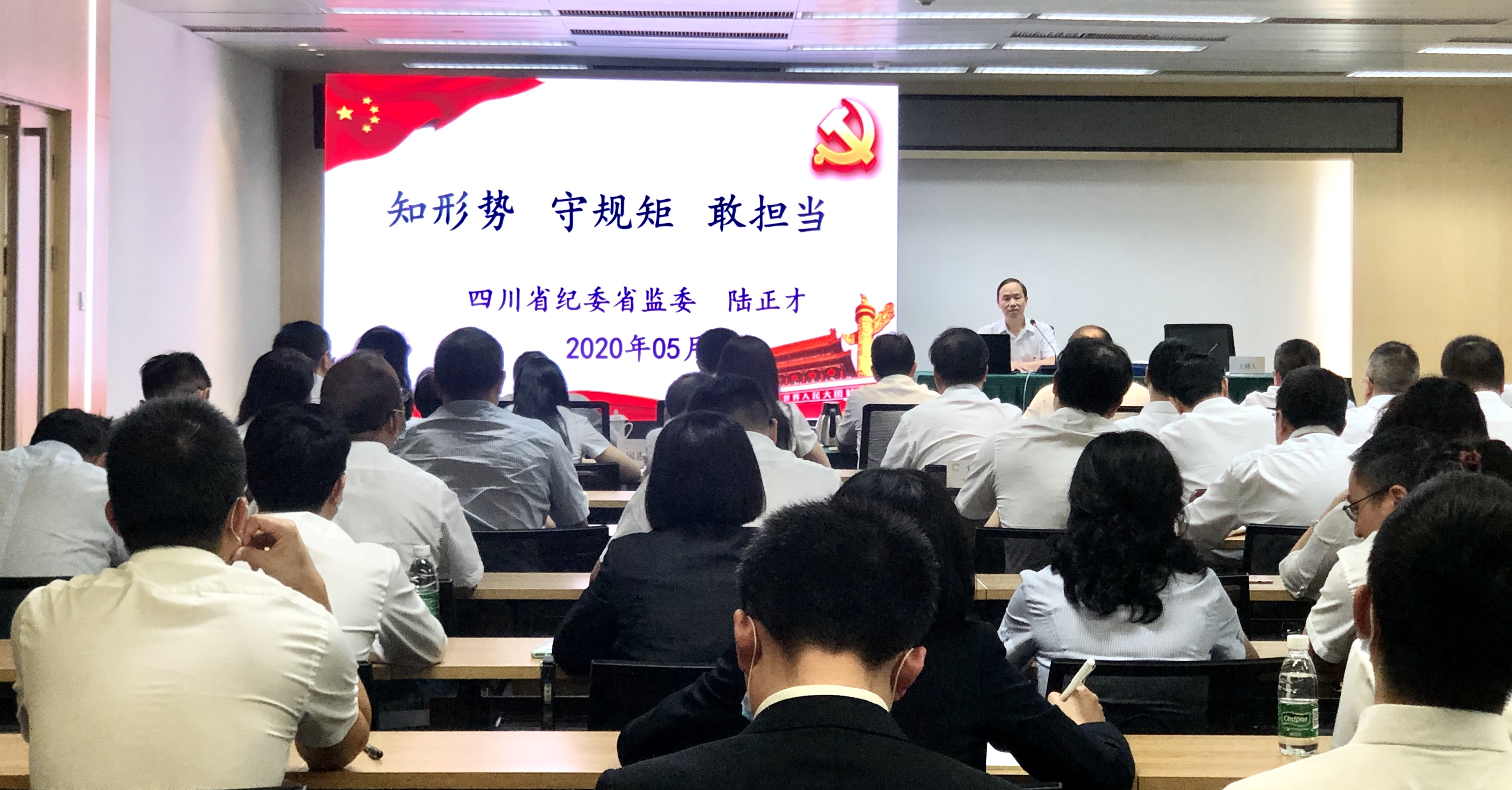 下午,金控集團(tuán)特邀四川省紀(jì)委監(jiān)委案件審理室副廳長級主任,駐四川港投集團(tuán)紀(jì)檢監(jiān)察組組長,港投集團(tuán)黨委委員、紀(jì)委書記陸正才同志在集團(tuán)5樓會議室做了《知形勢、守規(guī)矩、敢擔(dān)當(dāng)》預(yù)防職務(wù)犯罪專題講座,陸正才針對當(dāng)前社會反腐形勢,結(jié)合一個個典型案例,以案釋法、深入淺出,對職務(wù)犯罪的概念、基本特征、表現(xiàn)形勢、產(chǎn)生原因、危害性后果及如何預(yù)防進(jìn)行了充分闡述,為廣大干部職工敲響警鐘的同時,也筑牢了反腐倡廉的思想防線。