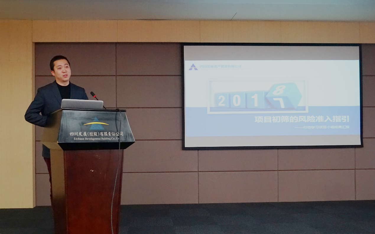 2018年1月11日下午,四川發(fā)展資產(chǎn)管理有限公司在14樓多功能會議室召開了“起跑線與加速度”行動學習匯報大會??偨?jīng)理蒙宇,副總經(jīng)理薛玉芳、嚴軍旗、張勇,總經(jīng)理助理范茂成、詹蕓、張淼、徐歆出席匯報會,“起跑線與加速度”項目培訓講師、上海交通大學戰(zhàn)略管理碩士、四川大學MBA中心導師鄭旭全程指導,公司全體員工參加匯報會。