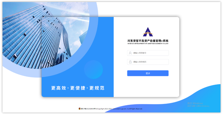 該系統以資產估值作為核心版塊,基于數十萬條二手房、司法拍賣、新房、土地出讓數據及基準地價信息,通過手機端(微信小程序:估值e系統)和PC端(www.scdamc-gz.com)的實時互聯,將項目前期盡調成果與后端估值有機結合,充分展示資產的實物、權益及瑕疵、風險、變現能力等,初步解決資產現時估值和后期價值提升問題。根據公司全面風險管理要求和系統建設規劃,不良估值管理e系統將根據業務和管理需求分期開發、逐步完善。上線試運行期將持續2個月,于2023年2月末完成上線調試,正式版將在完成應用及優化調整后,于3月正式上線發布。